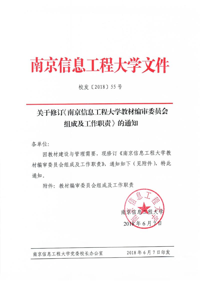 关于修订《南京信息工程大学教材编审委员会组成及工作职责》的通知