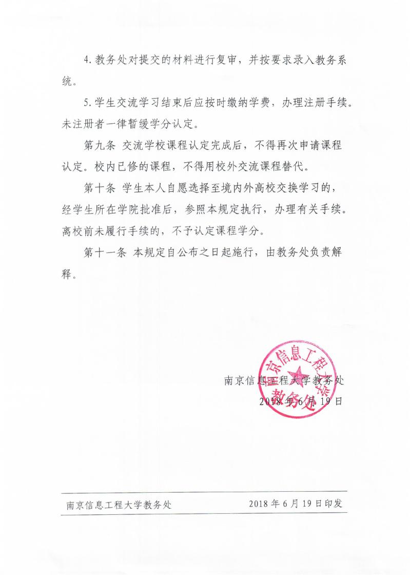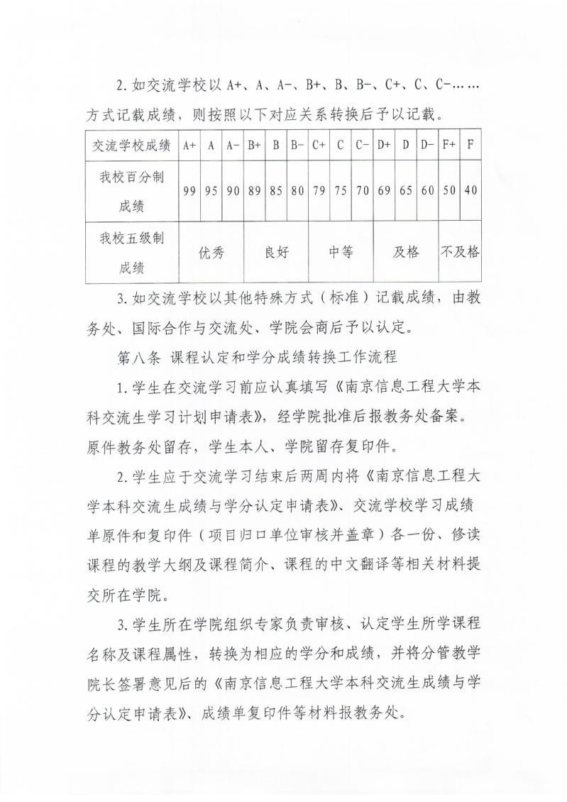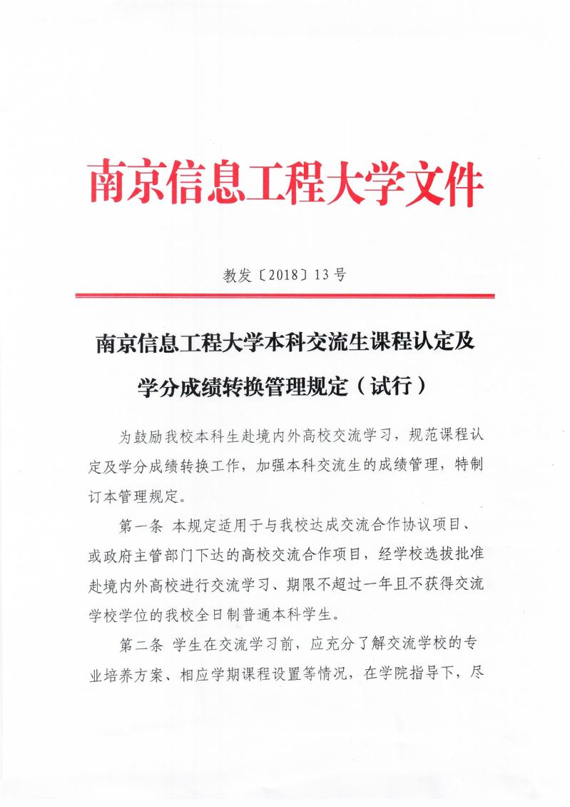 南京信息工程大学本科交流生课程认定及学分成绩转换管理规定(试行)