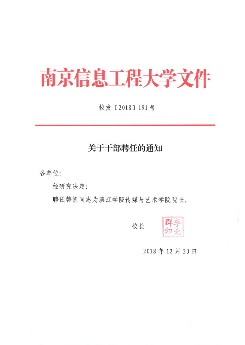 校发〔2018〕191号 关于干部聘任的通知