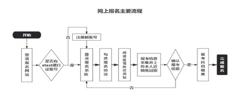 5.网上报名需要ETEST通行证账号,该账号在教育部考试中心所有使用ETEST通行证的报名系统中通用。若考生已有ETEST通行证(四、六级考试报名的账号以及前期全国计算机报名的账号可以直接用),则直接登录报名;若没有该账号,需要先进行账号(账号和密 码 需要记住,后面打印准考证以及下次报名均须使用)注册后再进行报名。对于新注册账号的同学,需要关闭注册界面,再用注册的账号重新登录报名网站。