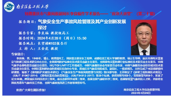特邀重庆市气象局原副局长李良福作学术报告——应急大讲堂(第二十期)