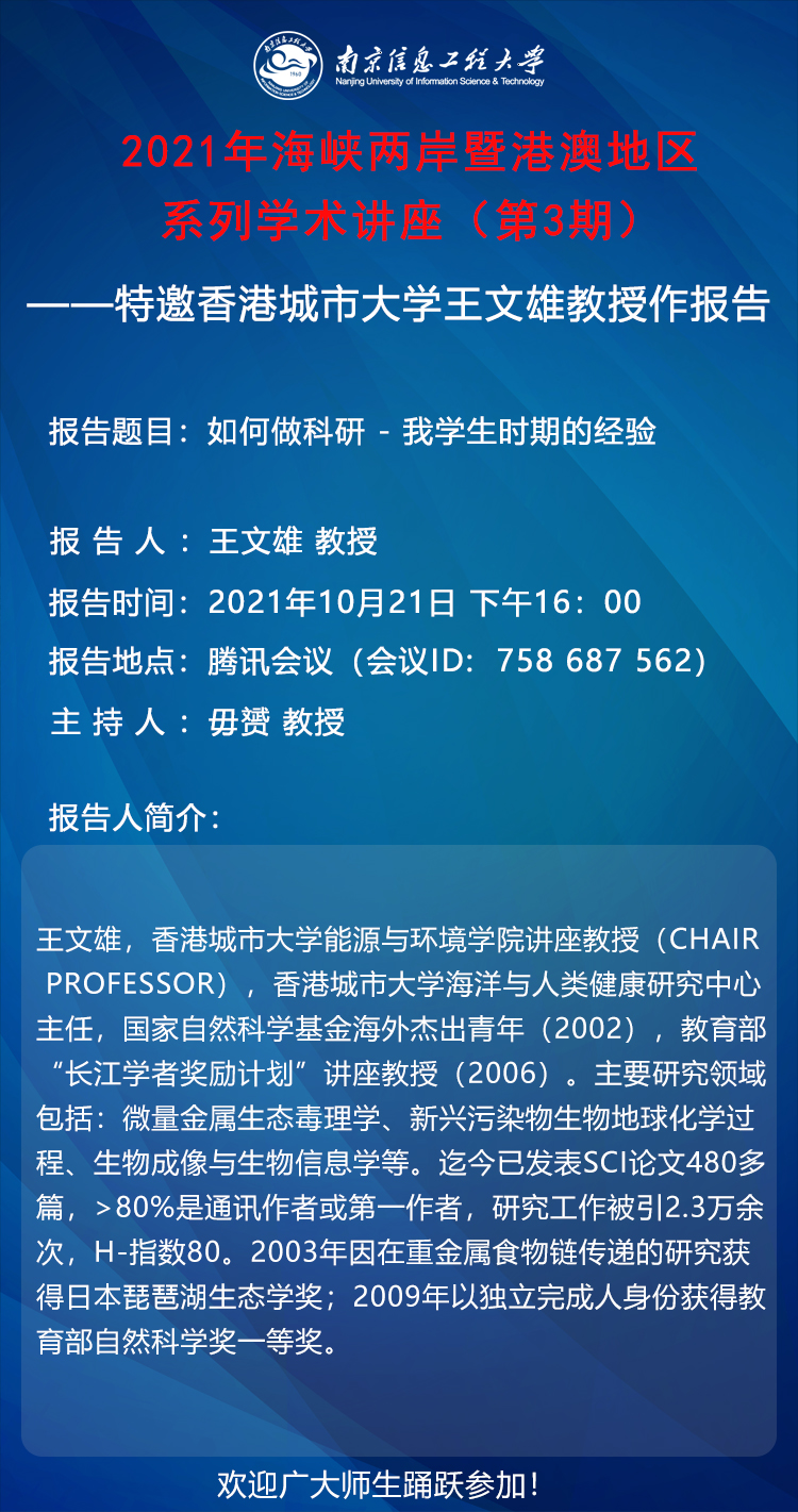 2021年海峡两岸暨港澳地区系列学术讲座(第3期)——特邀香港城市大学王文雄教授作报告