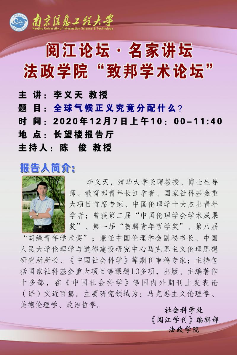 阅江论坛·名家讲坛&法政学院“致邦学术论坛”——特邀清华大学李义天教授来我校作专题学术报告