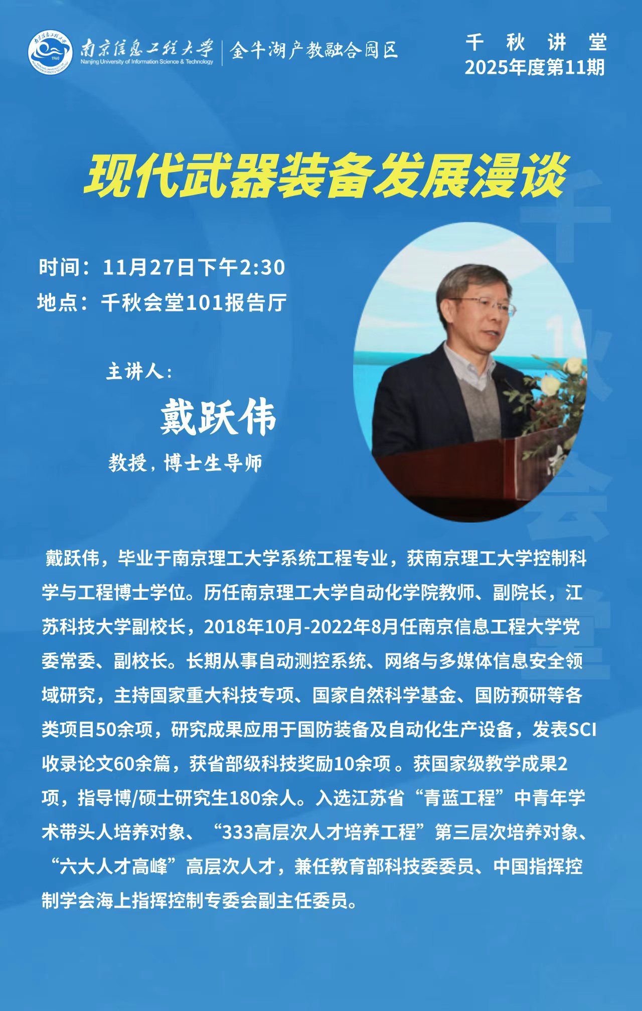 千秋讲堂预告(2025年第十一期)—现代武器装备发展漫谈