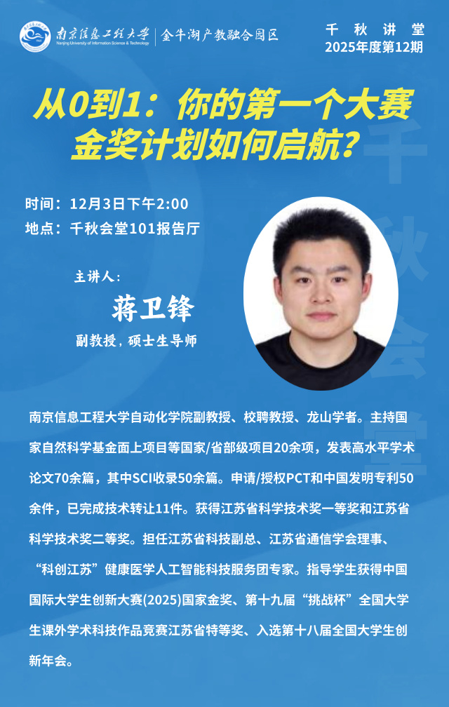 千秋讲堂预告(2025年第十二期)—从0到1:你的第一个大赛金奖计划如何启航?