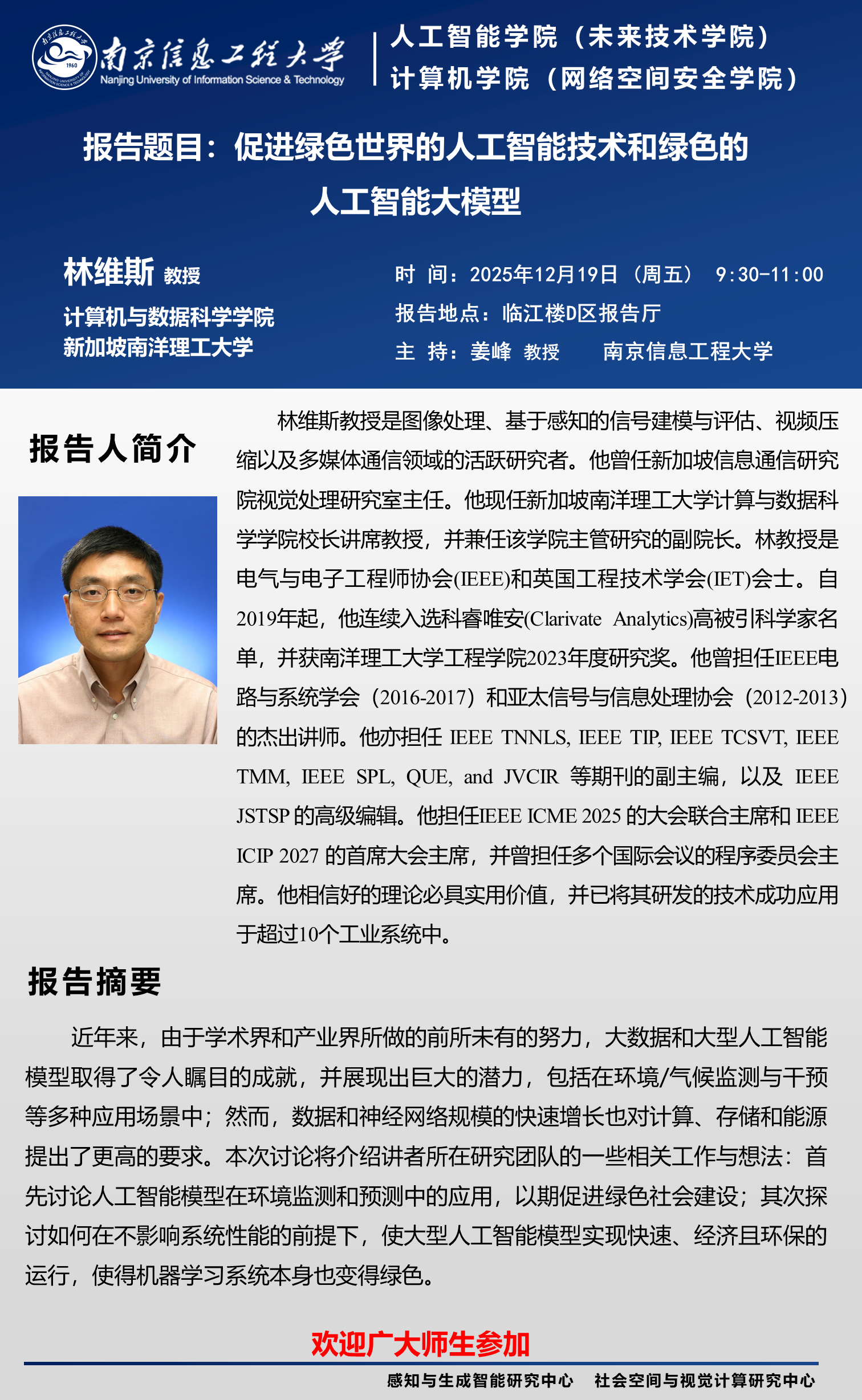 特邀新加坡南洋理工大学林维斯教授做学术报告