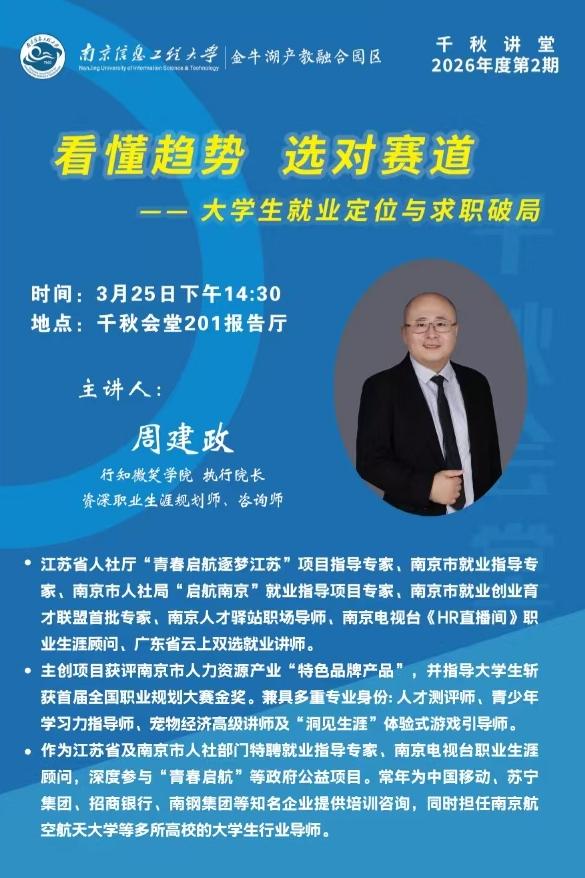 千秋讲堂预告(2026年第二期)—看懂趋势 选对赛道:大学生就业定位与求职破局