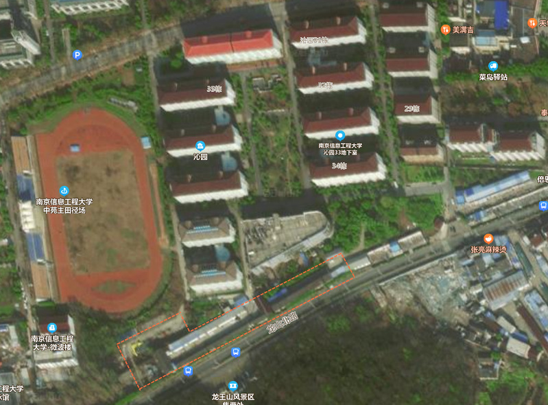 项目位于南京市宁六路219号南京信息工程大学原中苑南门至游泳馆段沿龙山北路区域。