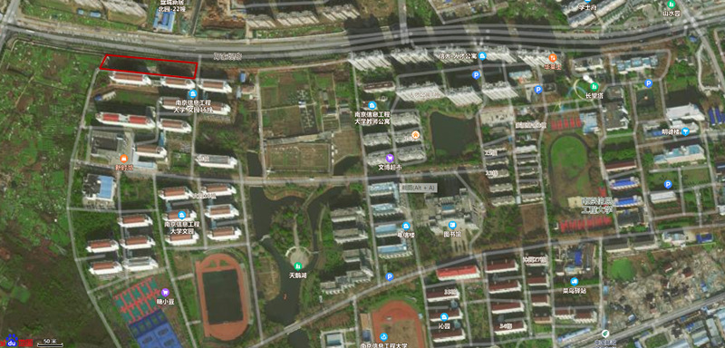项目位于南京市宁六路219号南京信息工程大学西北侧的文园16-17幢学生公寓北侧沿万家坝路区域