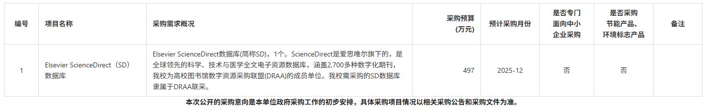 为便于供应商及时了解政府采购信息,根据《江苏省财政厅关于做好政府采购意向公开工作的通知》等有关规定,现将南京信息工程大学2025年10月(第1批)政府采购意向公告如下: