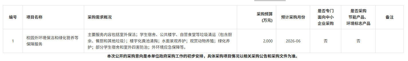为便于供应商及时了解政府采购信息,根据《江苏省财政厅关于做好政府采购意向公开工作的通知》等有关规定,现将南京信息工程大学2026年3月(第1批)政府采购意向公告如下: